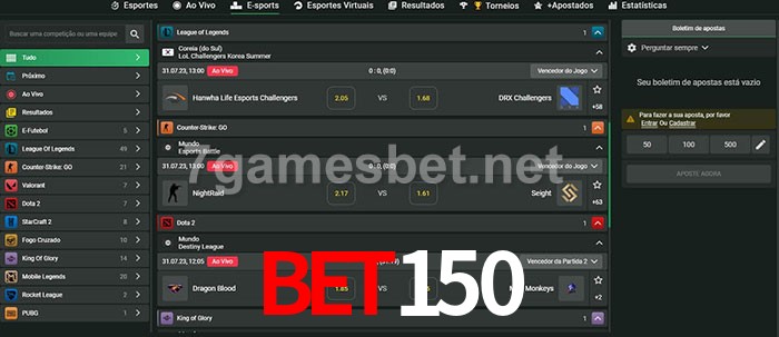 O Bet150 oferece uma grande seleção de opções de apostas em e-sports com probabilidades competitivas